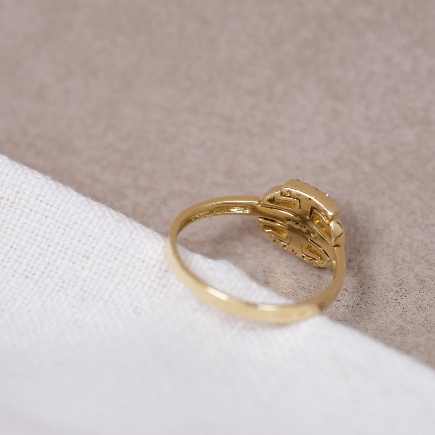 La silhouette compacte de la monture en fait une bague confortable, facile à porter au quotidien. Le motif ovale apporte une présence élégante sans être ostentatoire, tandis que les diamants — au total 14 pierres pour environ 0,11 ct — ajoutent un scintillement discret mais raffiné.