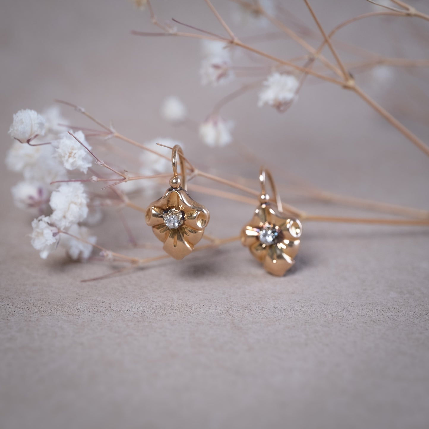 Leur design romantique, typique du milieu du XXe siècle, met en valeur le travail artisanal de l’époque : finitions soignées, attaches fines et silhouette discrète. Parfaites pour illuminer le visage avec subtilité, elles se portent aussi bien au quotidien qu'en touche précieuse pour une occasion.