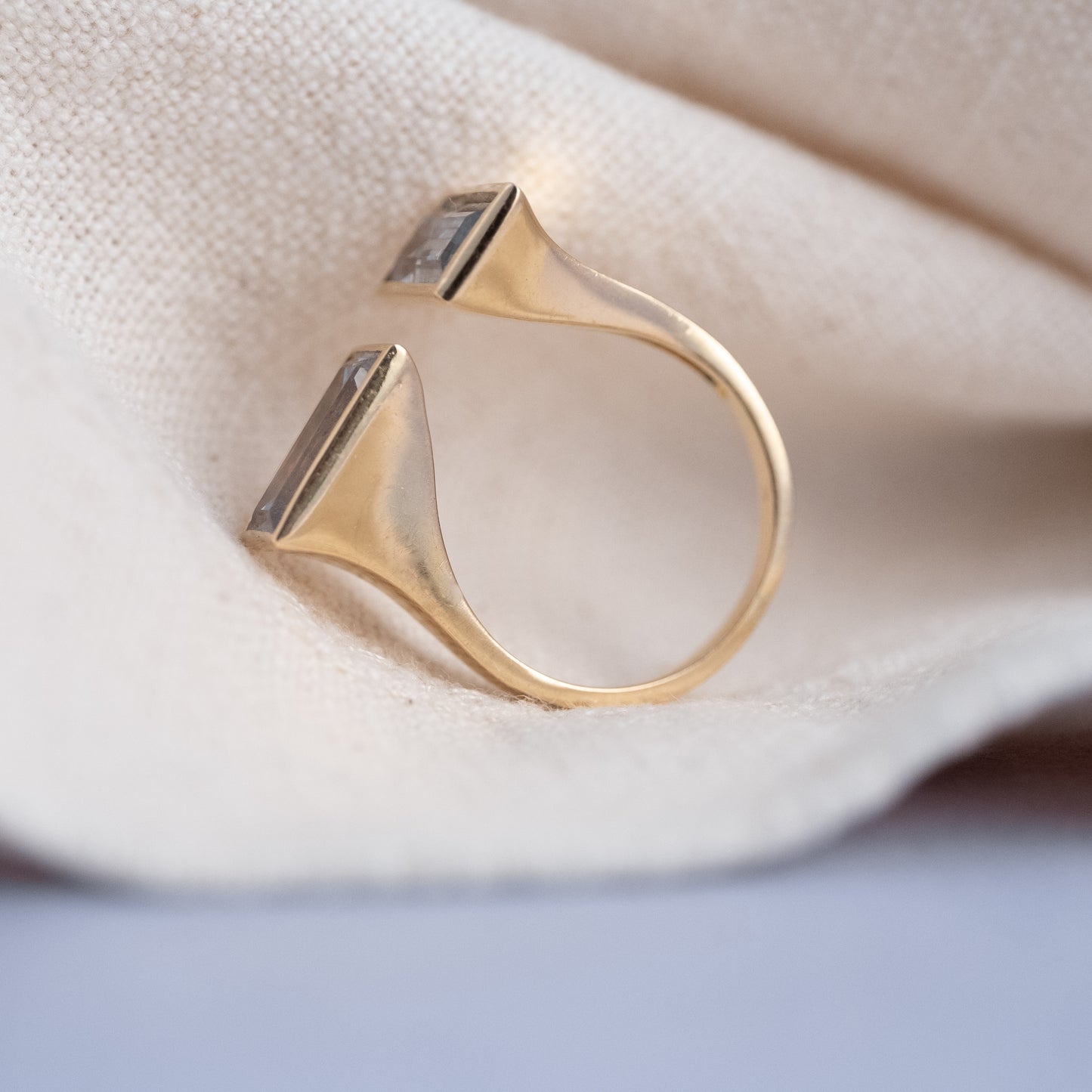 Une bague au caractère affirmé, élégante et singulière, qui revisite le motif classique du Toi et Moi dans une interprétation contemporaine.