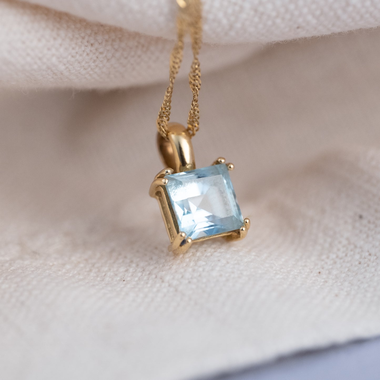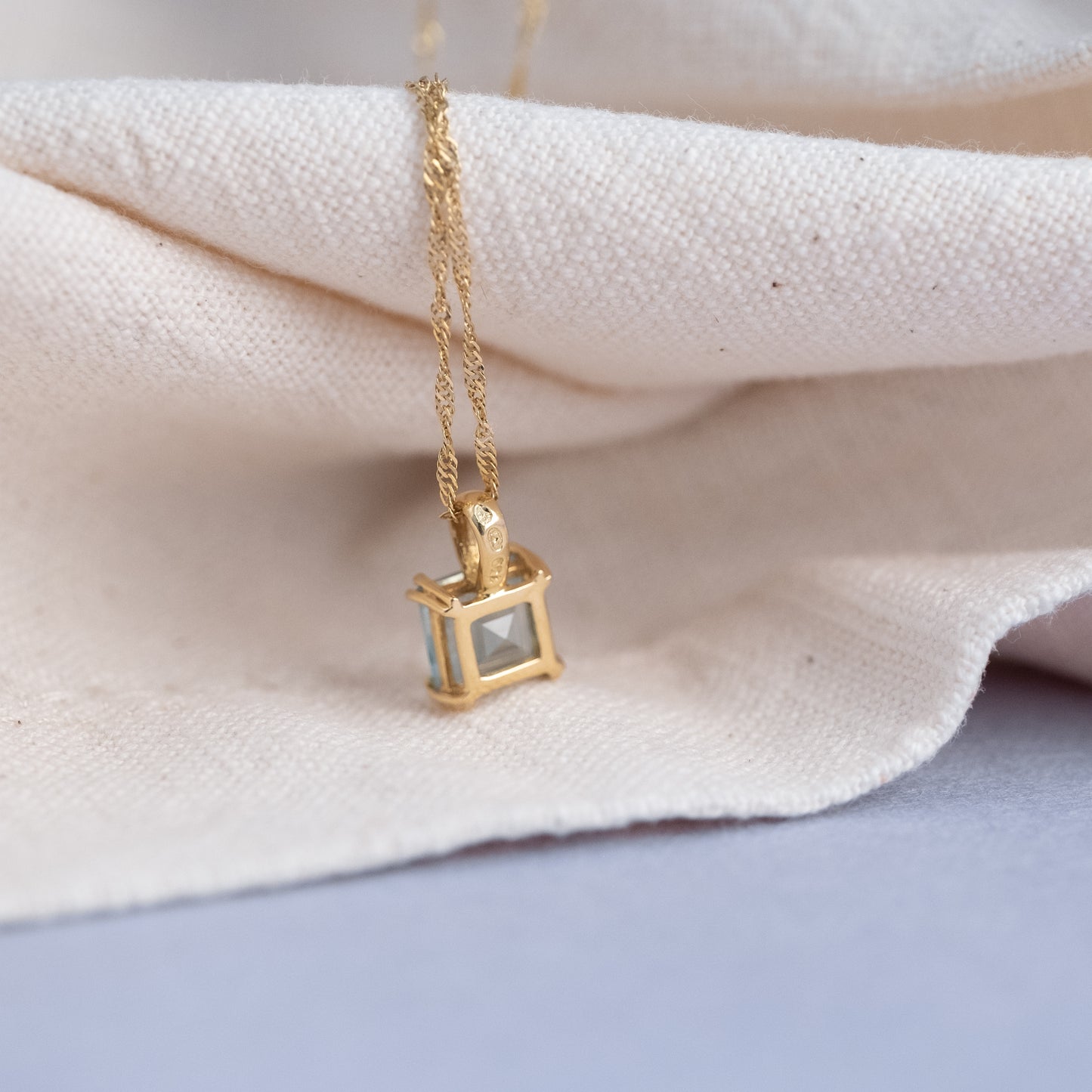 Pendentif en or jaune serti d’une aigue-marine carrée
